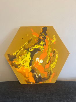 I use various thicknesses of acrylic paint to create stunning unique shapes and patterns on canvas.